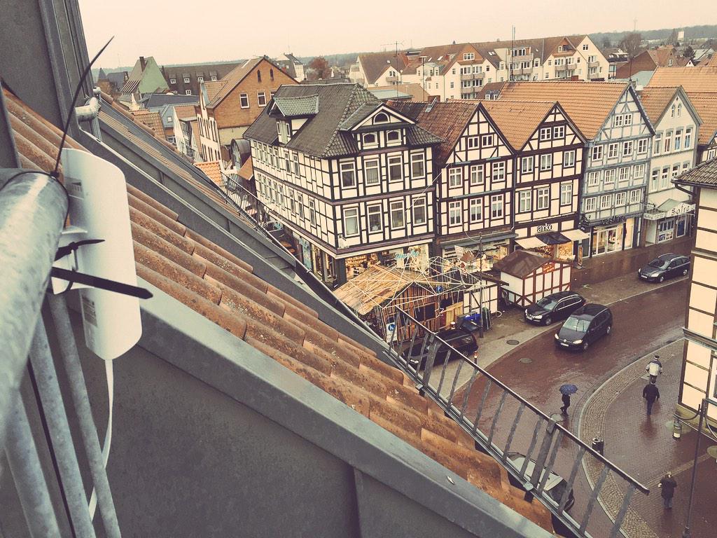 Er hat eine Nanostation Loco M2 die mehr oder weniger auf den Kreuzungsbereich drüber strahlt.
