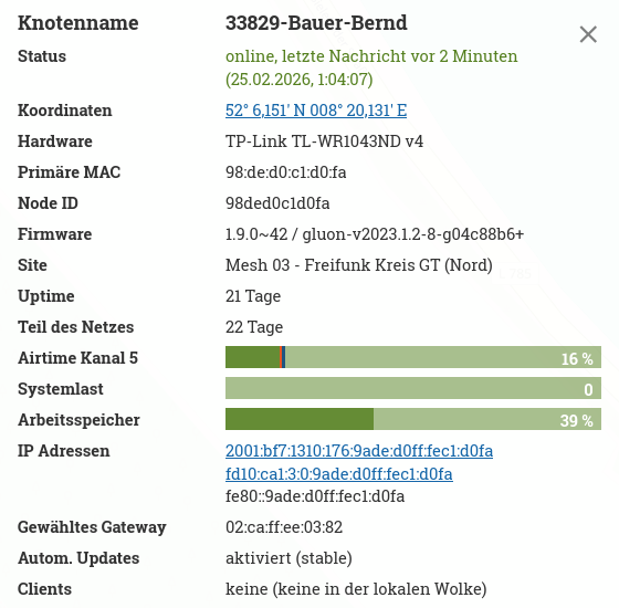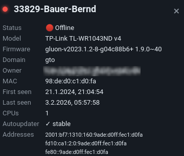 Als AuĂenstehender betrachtet wirkt die Kritik hier etwas inkonsequent: Wenn Kontaktdaten von einer Community bewusst ĂŒber eine öffentlich und ohne Authentifizierung erreichbare API ausgeliefert werden und im Konfigurationshinweis sogar ausdrĂŒcklich steht, dass diese Informationen öffentlich einsehbar sowie von jedem herunterladbar und verarbeitbar sind, dann ist eine Aggregation durch Dritte technisch erwartbar. Selbst wenn man die zentrale API einschrĂ€nkt, bleiben die Daten faktisch weiterhin öffentlich zugĂ€nglich, da sie ĂŒber die jeweiligen Knoten-Statusseiten abrufbar sind und sich durch systematisches Crawlen oder schlichtes Scannen der erreichbaren Adressbereiche ebenso automatisiert erfassen lassen. Eine Map, die vorhandene API-Daten auswertet, schafft daher keine neue Veröffentlichungsebene, sondern nutzt lediglich bereits öffentlich exponierte Informationen. Eine nachtrĂ€gliche EinschrĂ€nkung dieser Daten widerspricht zudem dem Freifunk-Gedanken: Die Kontaktdaten werden von den Betreibern bewusst hinterlegt, und jede KI, jeder Crawler oder Bot hat sie ohnehin bereits indexiert, sie nachtrĂ€glich âherauszubekommenâ ist praktisch unmöglich. Wenn bestimmte Felder, insbesondere potenziell personenbezogene Angaben wie das Owner-Feld, nicht extern verarbeitet oder angezeigt werden sollen, mĂŒsste das konsequenterweise serverseitig unterbunden werden, etwa durch entsprechende Filter im Monitoring-Stack wie z. B. Yanic. Solange die Daten jedoch offen ausgeliefert werden, erscheint ihre maschinelle Verarbeitung als legitime und technisch naheliegende Nutzung der bereitgestellten Infrastruktur.