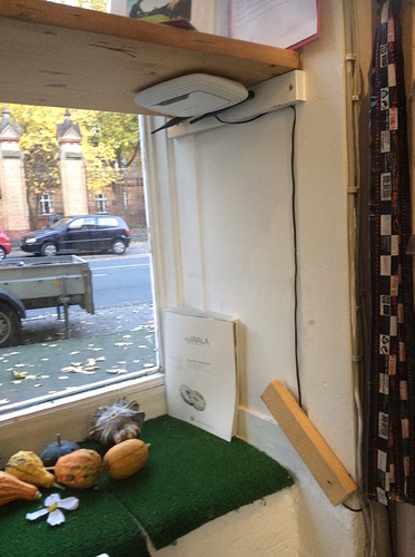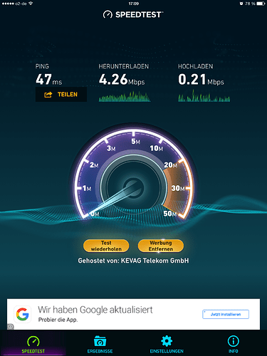 Soweit ich das von der Strasse getestet habe war das ganz OK. Die sahen das Gesammtbild ihrers Schaufensters durch die Antennen stark beeinträchtigt. Als die eine Mitarbeiterin mit mir eine Diskussion über Stralenbelastung am Arbeitsplatz anfangen wollte, bin ich doch lieber mal schnell gegangen ![]()